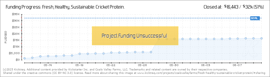 Coalo Valley Farms, California's first edible cricket farm, missed its goal this month to raise money on Kickstarter. (Read More)