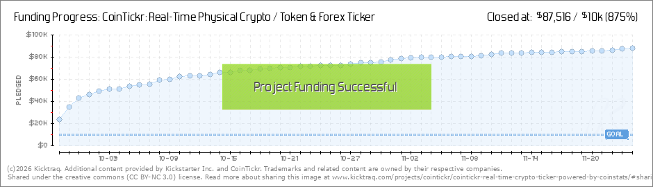 Hey CoinTickr Fam! Look what you've done! In just 7 short days, we crossed a few remarkable milestones with the help of our great community: 100% fully funded in under 15 minutes Β $25K milestone in 12 hours Β Over 200 backers in our community! Β ... (Read More)