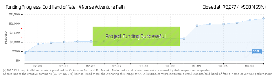 Hey Dungeon Crawlers, The Cold Hand of Fate funding campaign has completed successfully. Look to receive the backer survey today for the collection of fulfillment information. I'm very grateful to all of you who have backed this adventure. I hope you... (Read More)