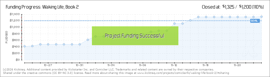 Good morning everyone! I wanted to let you know that the Waking Life Book 2 hard copies are in production at the printer, and we should have them (Hopefully) to show before the campaign is over! Everything is still on track to get everyone their... (Read More)