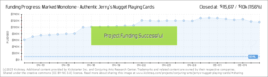 Dear backers, You have created playing card history with us through this campaign! For the first time ever, the Factory-Marked Jerry’s Nugget Playing Cards is now funded and made available because of you guys. Now that the project is funded, all... (Read More)