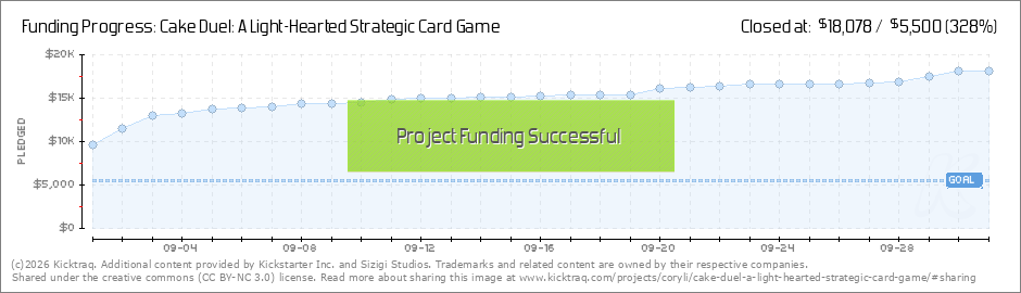 Cake Duel Party!On September 30th, in celebration of the last day of our campaign, we're having a Cake Duel Marathon! We'll be playing and commentating rounds of Cake Duel for 12 hours straight on Twitch in the world's first Cake Duel tournament!... (Read More)