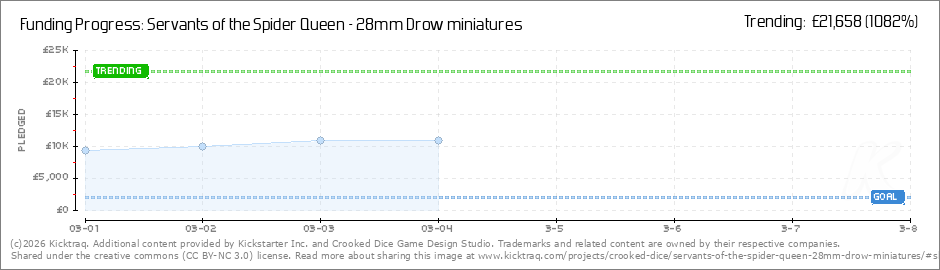Wow! We are flying tonight! All your support has helped us unlock two more stretch goals! At 6K we unlocked the A3 poster - so all backers will now receive an A3 print of Dave Needham's concept art for the Spider Queen Statue. Plus we have just... (Read More)