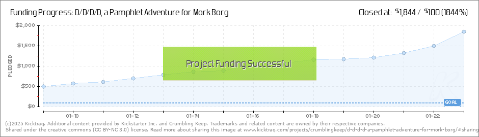 Wow, that was quick. This might be our quickest funding ever. Congrats, you gutterborn scum. The world may be ending, but you'll have this slick pamphlet adventure in your hands before it does. It's all ready to go to print, so we'll be sending off... (Read More)
