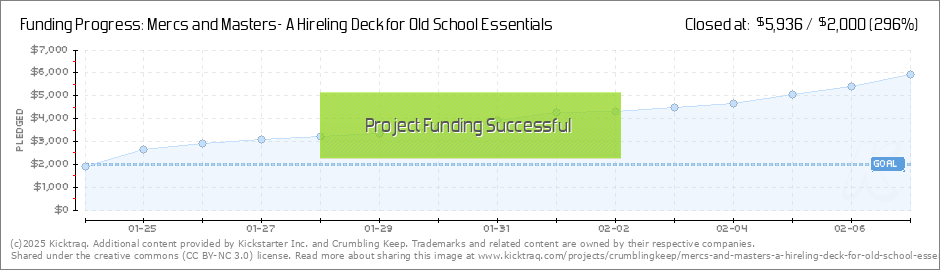 Folks, excellent work. It was great to wake up today to see that we had funded. All of you folks who backed in the first 24 hours are going to get that free adventure pdf, Blood Fish Isle, as well. Here's a question for you all - is there a... (Read More)