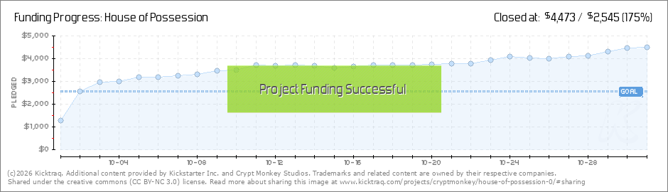 What an amazing first day! Your support has helped push House of Possession right on up to 50% of our goal. With your continued help and backing, we will be talking about stretch goals in no time. In the coming days, we’ll be adding in another goal... (Read More)