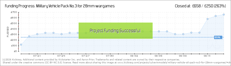 Our third selection of military vehicles for 28mm wargames. Digital STL files and physical pledges available.