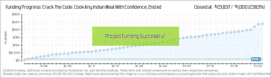 I am so thrilled that we have crossed more than 500 backers, have crossed a major threshold of $15K and are going to have such a fabulous community of enthusiasts of the Indian cuisine! Thank you!! We've got less than three weeks to go, and I'm... (Read More)