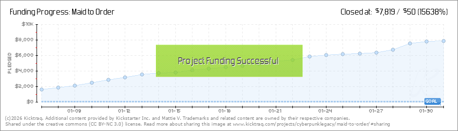 Hey Everyone we are off to a great start with the first goal unlocked and second not far off i will be looking to make some new Stretch goals soon would you prefer your favorite maid in a new pose, or a new maid, probably a tavern maid for rpg let me... (Read More)
