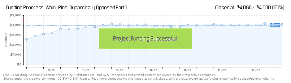 Thank you so much to eveyone who got in on our early launch ! we are just about halfway funded ! and as soon as we hit funding we will put the pins into production that way they can get done quicker ! and with that thank you again to everyone . (Read More)