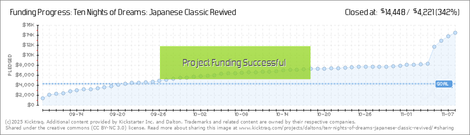 Help your backers reach your daily goals and help others see how you're doing. It's easy, with Kicktraq Mini.Here are a few quick snippits of code you can use to embed your personalized widget on your website, in your blog, and even on your favorite forum.