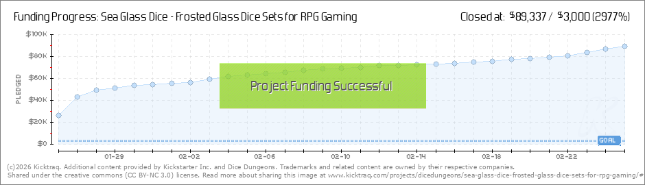 Amazing! What a wonderful first day, thank you for supporting our Sea Glass Dice project! This blew away our record for an opening launch day, and was also the fastest any of our projects have funded. 3 Stretch goals unlocked! Not only did you... (Read More)