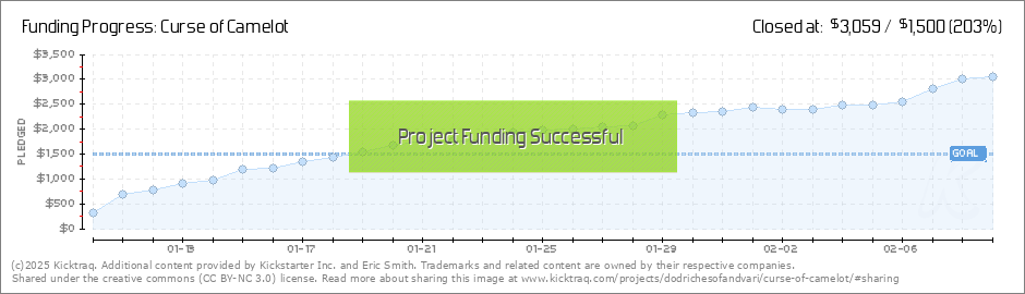 Hello everyone! I would like to take this moment to thank all of you for supporting Curse of Camelot! As of this morning, we are funded and setting our sights on the first stretch goal, which are the side quests. As of right now, we are at 57 backers... (Read More)