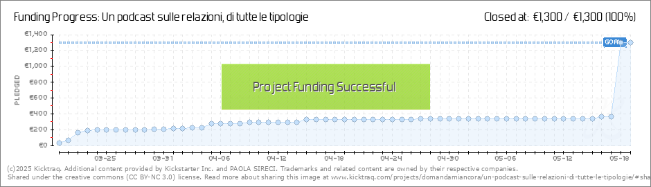 Non so come dirvi grazie! Con i primi 215,00 euro raccolti, voi avete reso possibile la realizzazione della sigla del mio podcast che vi assicuro essere stupenda! I sound designer che stanno lavorando con me e per me lo stanno facendo in modo... (Read More)