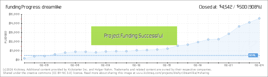 We're funded! My deepest heartfelt thanks to all backers! I appreciate your vote of confidence in dreamlike so very much! It seems like I will be able to get this game I love out to the world. When I first considered running a Kickstarter for... (Read More)