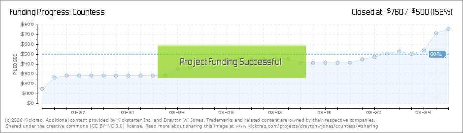 …in the 11th hour we are cruising past stretch goals like Cinderella rushing home from the ball! Passing $600…. We will now officially have ILLUSTRATED CHAPTER HEADINGS! Passing $700…. Physical backers will get an exclusive Countess bookmark!... (Read More)