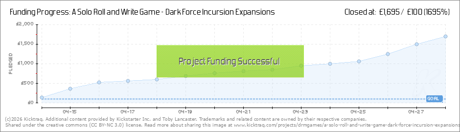 So the last couple of weeks have flown by and it has been so exciting following the alerts and seeing Dark Force Incursion grow...and boy has it grown! So much so I have set another stretch goal of £2000. More maps is the answer! And of course... (Read More)