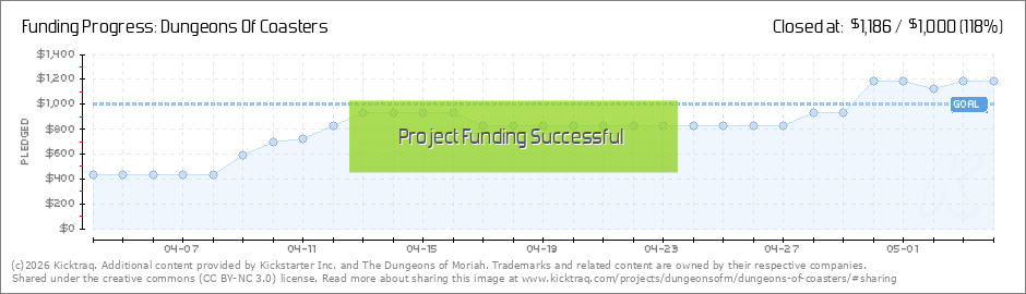 We are almost funded at $850 out of a goal of $1000 as of when I wrote this! I am very excited to be able to provide Dungeons of Coasters for everyone. to help boost the funding I have a small request from all of you faithful backers. Please share... (Read More)