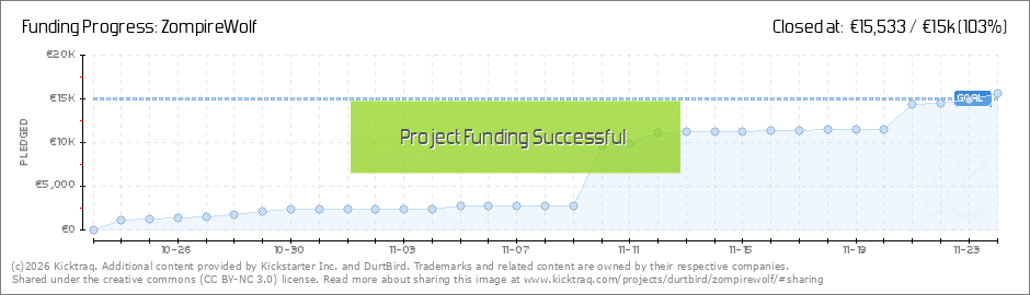 With 6 days to go and 75% of the way there, ZompireWolf will be the first computer game in Ireland to be successfully funded if we reach our goal! A massive Thank You to all our backers for supporting us. Please share the campaign for one last push... (Read More)