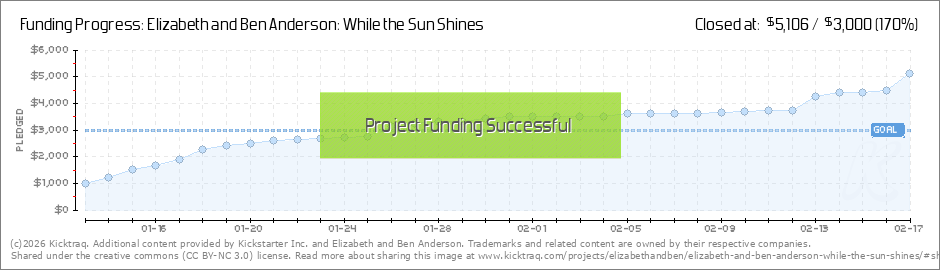 Dear Friends and Supporters, We did it! Thank you for helping us reach our goal in just two weeks! We are so incredibly grateful for all of your support. We love making music for you, and we are so happy that you love our music. You made this... (Read More)