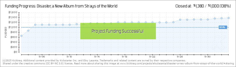 Hey everyone! I'm excited to share that we hit our funding goal today! It only took us 3 days, which means there's lots of room to grow! The higher we go, the more we'll be able to do to promote the album, get cool artwork/photos, and really... (Read More)