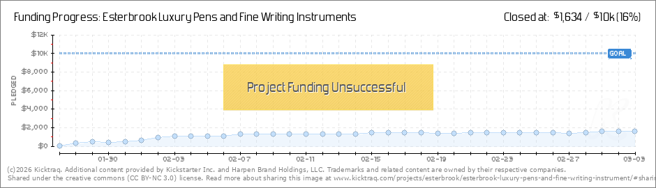 We have added a new $30.00 Esterbrook Special Edition Fountain Pen made exclusively for Kickstarter backers. This Stunning Fountain Pen will be available in your choice of Royal Blue or Midnight Black (Read More)