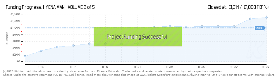 Hi Backers, We have less than 100 minutes to go! What a journey we've been on. Massive thank you to each and everyone of you for backing Volume 2 of The Hyena Man. Let's start the countdown together. There is still time for you to go and... (Read More)