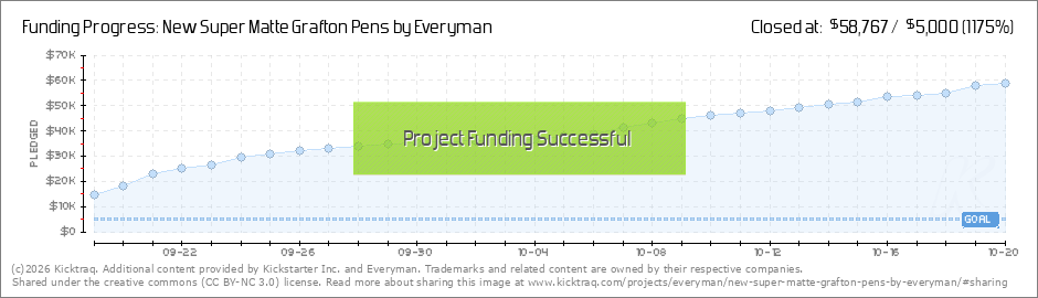 Hello Everyone, Time is almost up! In less than 60 hours, our Kickstarter campaign for our New Super Matte Grafton Pens will end. You all have been fantastic and we are grateful for the support. As you know, we now have an exciting Stretch Goal... (Read More)