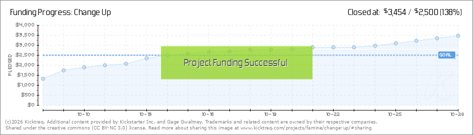 Thank You!!!!!! I want to start off by saying THANK YOU to all of our backers. I'm blown away. I did not expect that we would be at 50% within the first 10 hours of launching the campaign. It's a lot of fun watching Change Up get closer and closer... (Read More)