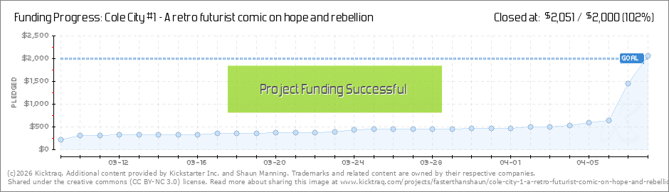 Hey all! Thanks so much for your support of this book so far! We've got a couple weeks left and funding isn't quite where I'd like it to be, but I'm going to do everything I can to make Cole City happen -- I love these characters, this world, and oh... (Read More)