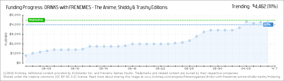 Help your backers reach your daily goals and help others see how you're doing. It's easy, with Kicktraq Mini.Here are a few quick snippits of code you can use to embed your personalized widget on your website, in your blog, and even on your favorite forum.