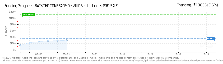Help your backers reach your daily goals and help others see how you're doing. It's easy, with Kicktraq Mini.Here are a few quick snippits of code you can use to embed your personalized widget on your website, in your blog, and even on your favorite forum.
