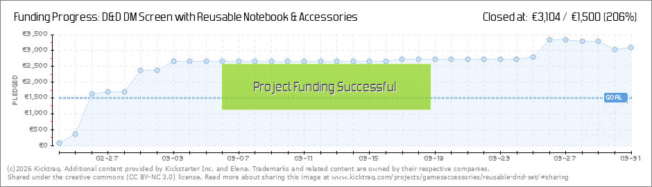 Dear Adventurers, The first milestone has fallen!Thanks to your incredible support, we have officially unlocked our first Stretch Goal at €1,500. This means production can now begin and the core rewards of our DND accessories system are officially... (Read More)