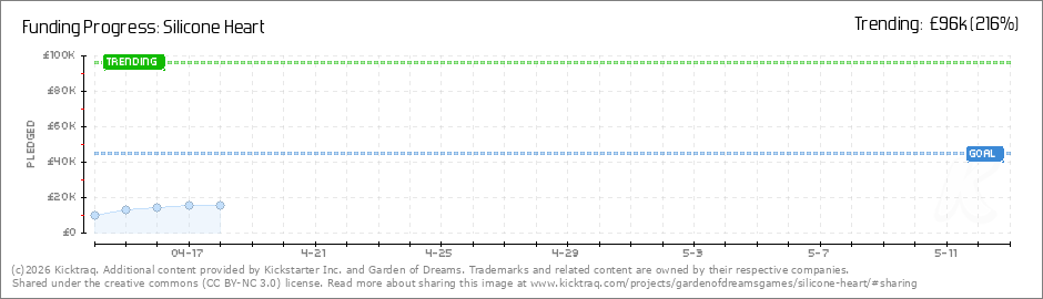 Help your backers reach your daily goals and help others see how you're doing. It's easy, with Kicktraq Mini.Here are a few quick snippits of code you can use to embed your personalized widget on your website, in your blog, and even on your favorite forum.