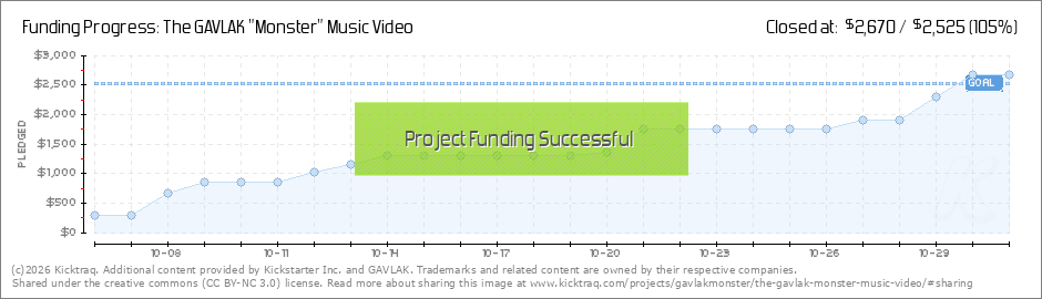 Help your backers reach your daily goals and help others see how you're doing. It's easy, with Kicktraq Mini.Here are a few quick snippits of code you can use to embed your personalized widget on your website, in your blog, and even on your favorite forum.