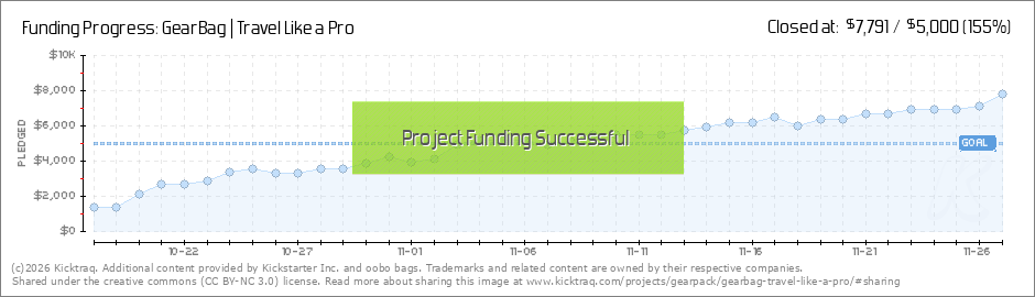 Thank you for taking the journey to travel like a pro with our GearBag. We are almost at our funding goal which is exciting, so thank you for backing us. We will keep you updated on our progress. From the oobo team (Read More)