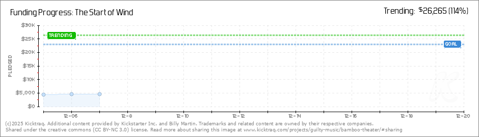 Help your backers reach your daily goals and help others see how you're doing. It's easy, with Kicktraq Mini.Here are a few quick snippits of code you can use to embed your personalized widget on your website, in your blog, and even on your favorite forum.