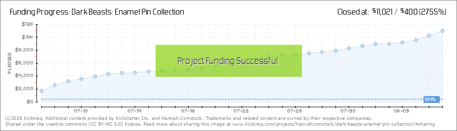 Hello everyone! We've successfully unlocked ten beast designs as both pins and patches! I have decided to stop at ten Dark Beasts as the campaign comes to a close. I want to make sure I have enough funding to cover all shipping and packaging expenses... (Read More)