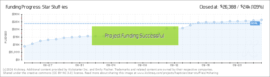 Congratulations, star enthusiasts! Star Stuff-ies are now FULLY FUNDED with one week to go! THANK YOU THANK YOU THANK YOU for believing in this project and for your generous involvement. I can't wait to get these rewards in your hands. There's... (Read More)