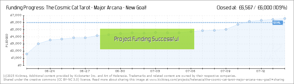 Well that’s it! We are officially FUNDED! The Cosmic Tarot Cats are happening!!! I have attached a timeline of what to expect and when (you’ll recognise this from the campaign.) This will give you a basic guideline to follow. For all backers I... (Read More)