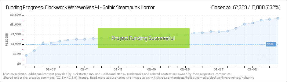 That's right, "Curse of the Clockwork Werewolves" has not only hit over 90% on Day 2, but we've been given the coveted Project We Love badge from Kickstarter! Neither of these things could have been achieved without all of your support! It's also... (Read More)