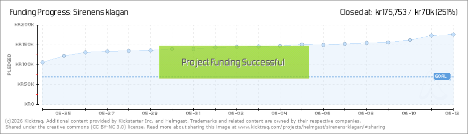 Sirenens klagan har gått imål och långt över förväntan tack var allt er stöd! Över 175 000 SEK som vi kan plöja in i bilder, tryck och allt det extramaterial ni har låst upp. Det finns bra en sek att säga - TACK! Nu jobbar vi hårt för... (Read More)