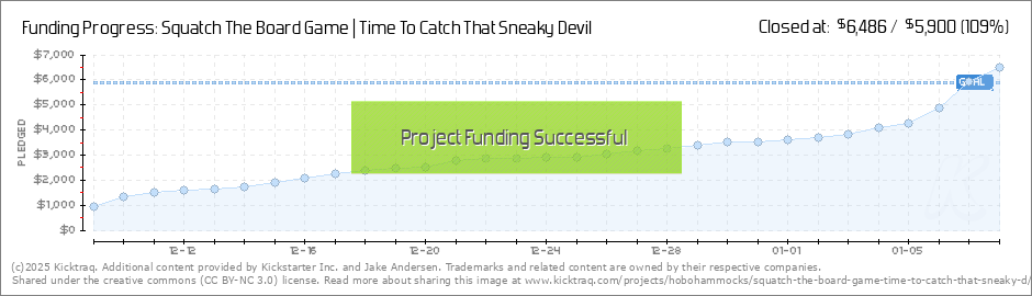Backers!!!! We made it! And we even had 14 hours to spare :) - Thanks to your tremendous support and passion for Squatch and awesome board games, we're there! We've reached our funding goal and that means you will be getting a copy of Squatch very... (Read More)