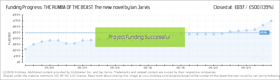Brilliant news! The Kickstarter for The Rumba of the Beast has now passed its goal of £500. A huge thank you to each and every backer. There's four days to go, so people can still get a copy of the novel early and at a lower price than the... (Read More)