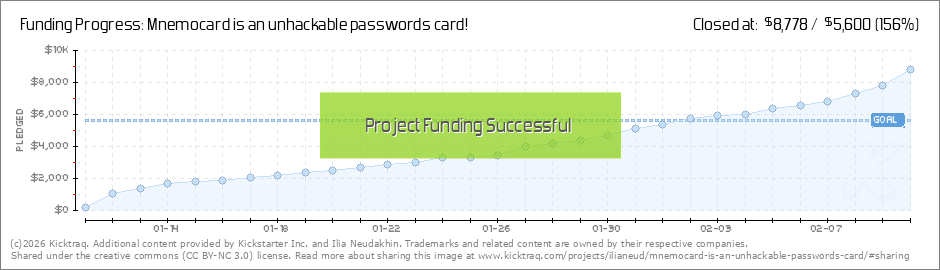 Hello awesome backers, Today we have some great news to share! Our project Mnemocard reached the goal, and we even still going forward. It is 106% as of now and over 216 backers! This is our very first project on Kickstarter and that is why all... (Read More)