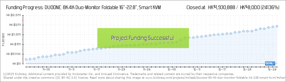 DUOONE: 8K/4K Duo-Monitor Foldable 16"-22.8", Smart KVM