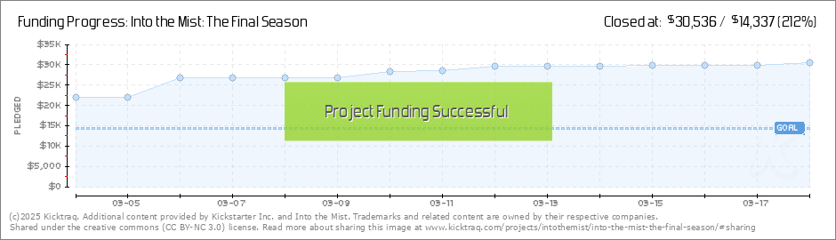 Hey All! we're in the home stretch now with 4 days left to go on the Into the Mist Season 6 Kickstarter campaign! We just crushed another of the Stretch Goals! Every backer will now receive Digital NPC Stat cards to add the Dawnbringers to you own... (Read More)