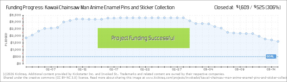 We couldn’t make any of these cute csm pins without you! Currently we have unlocked Chainsawman,Power,Reze. We had other designs unlocked but some supporters cancelled which affected the available choices. As we reach our deadline to pledge we will... (Read More)