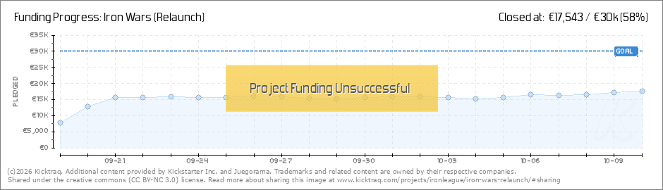 Dear Backers: We want to thank the old and the new Backers who support us in Iron Wars . The first 24 hours of the campaign we´ve got 40% of the target. Thanks! 1 new social Stretch goal is available If we get 30 shares in our Facebook post, we´ll... (Read More)