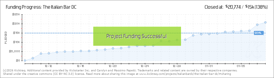 Thank you to all you early and enthusiastic crowd funding fans!! Massimo and I greatly appreciate your support. Permit delays have been costly. We had hoped to open in November but alas we are still awaiting DCRA to give us permission to "build... (Read More)